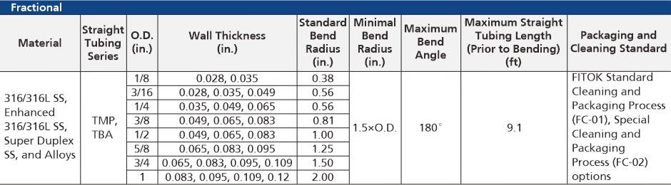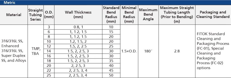 FITOK has extensive experience of tubing manufacturing and maintains more than 500,000 meters of tubing in stock for fast delivery. FITOK can offer instrumentation tube bending, high purity tube bending, media and high pressure tube bending in a variety of materials and sizes.